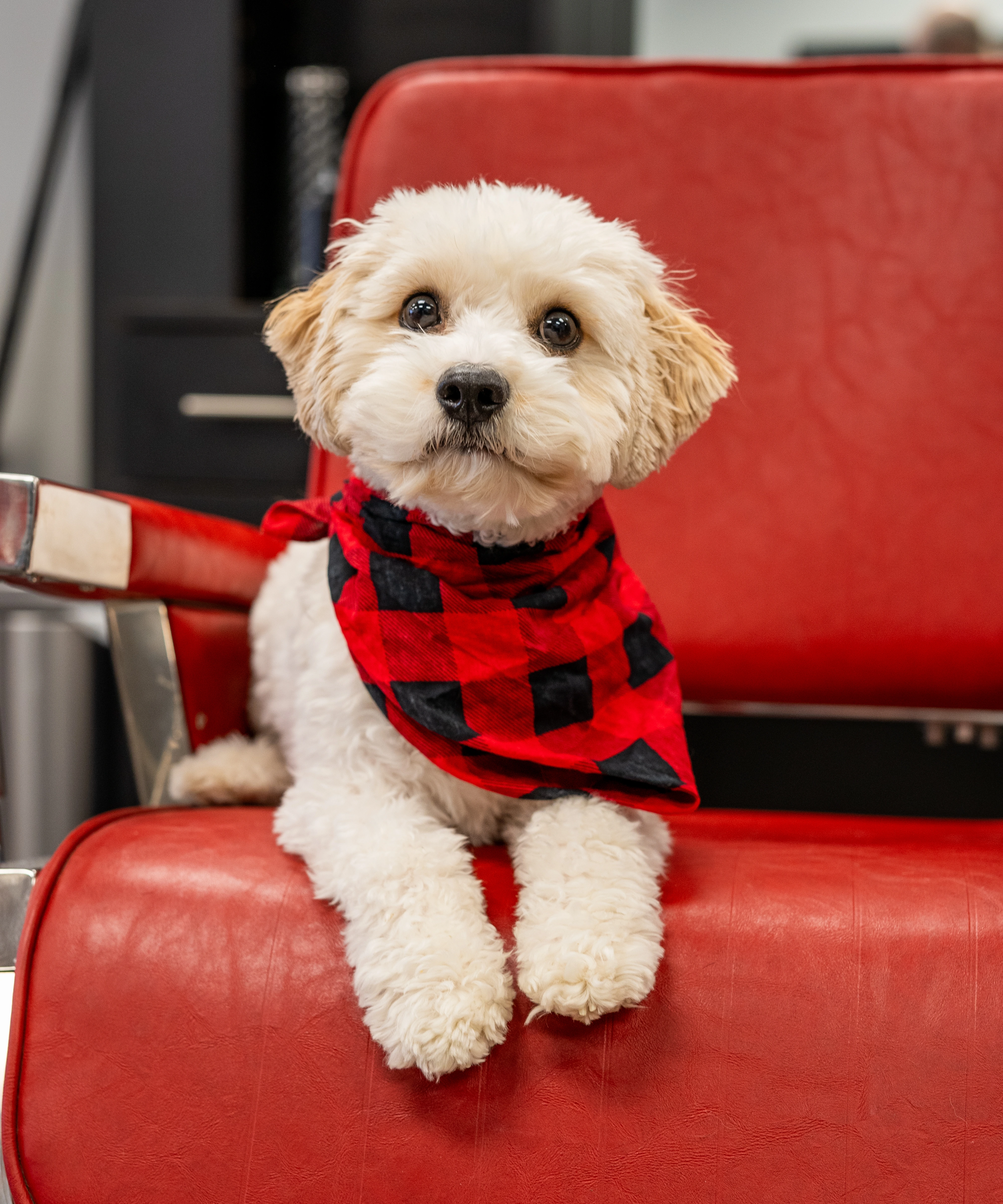 Known for his chill but playful demeanor and uncanny ability to sense when someone needs a little extra love, Charlie has become everyone’s favorite co-worker and companion. Stop by for a haircut, stay for the puppy snuggles—Charlie’s always here to make sure you leave with a smile.